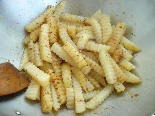 5. 拌匀:将调料与土豆条充分拌匀,让每一根土豆条都裹上调料。